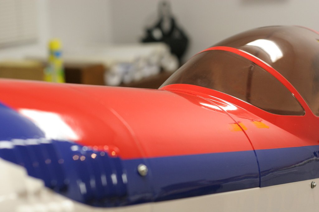 Here’s some shots of the canopy and side of the cowl… look at all that pre-done work… I’m spoiled on these now, if I got an ARF without the canopy pre-done I think it would just sit in the corner and never get assembled. The fit and finish on these modern day ARFs is rival’n the best builders. And, the Aeroworks ARF QBs have the best fit and finish I’ve seen: