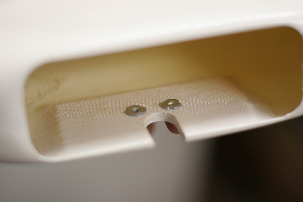 It doesn’t take but a minute to drill pilot holes in new locations. And, Aeroworks gives you a generously sized hard point to keep this from being any kind of problem. I’ve seen, and replaced, some slack factory hard points in these 1/3 scale ARFs from other manufacturers, but never from Aeroworks, their hard points are solid: