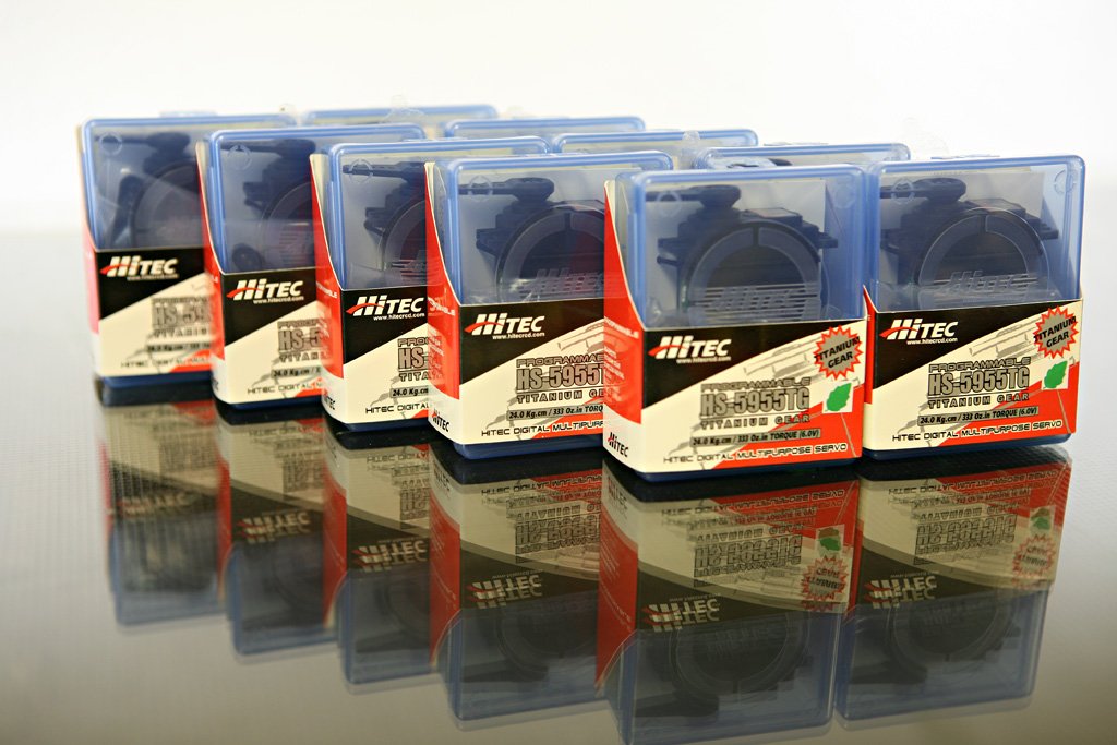 Hitec 5955s on everything but the throttle (that will be a 5945):