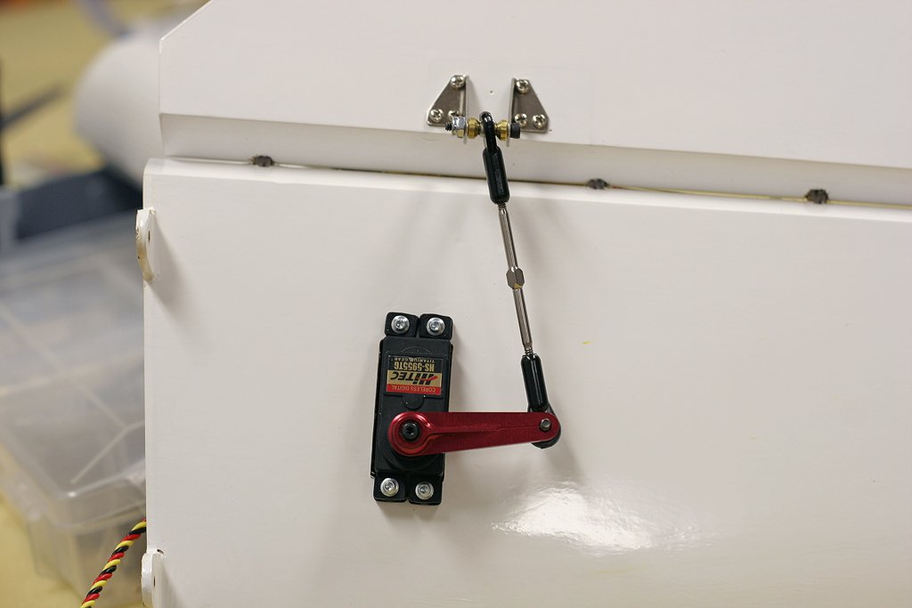 And, yes, I’m talking about the offset of the neutral position of the servo arm. I do not worry about it being a true 90 to the servo body. Same way that I do not make the pushrod parallel to the servo body at neutral. Tedious, yes, because I have to keep adjusting the length of the pushrod until that protractor indicates I’m 55 degrees each direction off the “determined” neutral to be exactly 4″ up and down on the control surface. I then have to do this with all three, or however many, servos. Again, though, once you get it once… you won’t do it any other way from then on.