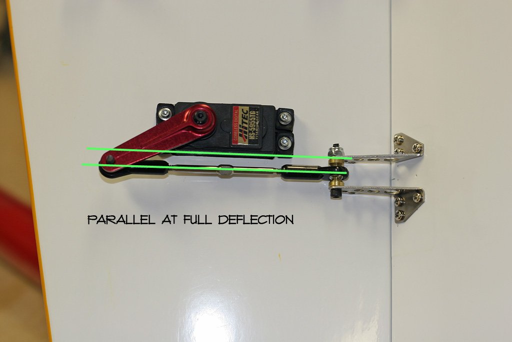 Also, without a decent angle at full deflection one servo can go past parallel and a ganged servo can hold it there. I’ve seen this happen… not pretty. The guy was blaming the servo manufacturer, btw: