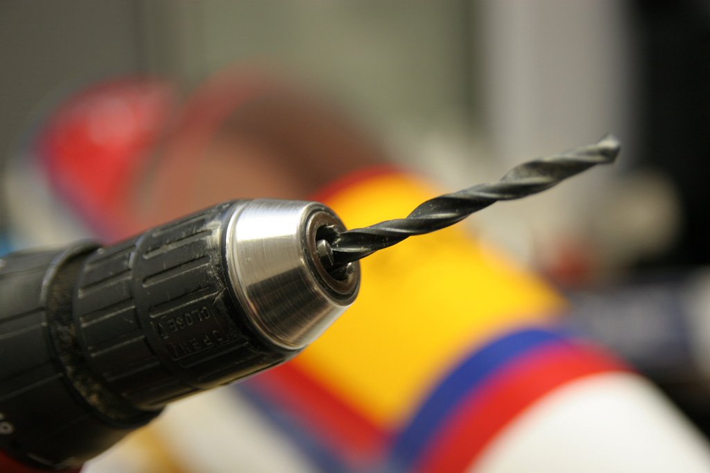 I always want to just grab the standard drill when doing this stuff, but if you want the holes to be straight while drilling in tight spots inside the plane you gotta break out the right angle attachment for the dremel: