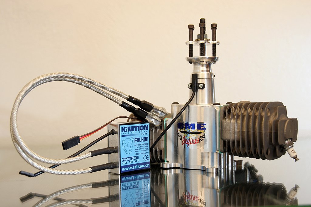 I love the plane, but the BME has issues. The engine started easy and ran cool all day. The cowl was always cool, and me, Mark, and Jimmy all touched the heads on landing… you could leave your finger on them for about a second before they got uncomfortably warm. I shot the engine at 136 degrees at its hottest point after it had been sitting around 2 minutes. I never shot it when we landed, but it was definitely running cool…. I had it very rich, though (32oz tank sucked dry to flame out in less than 8 minutes) and baffled, too: