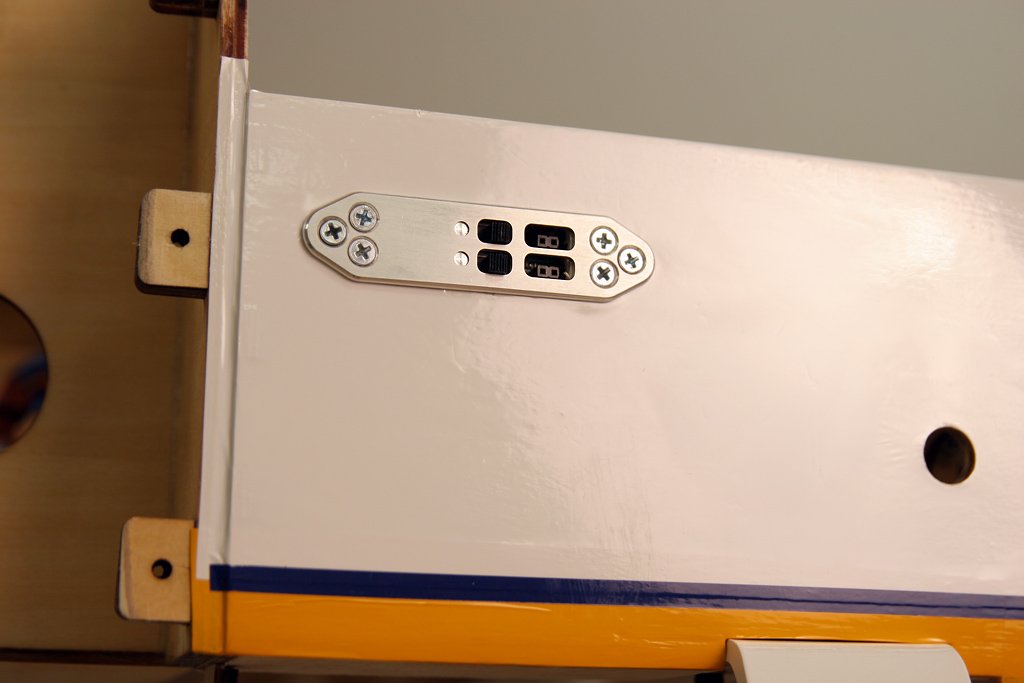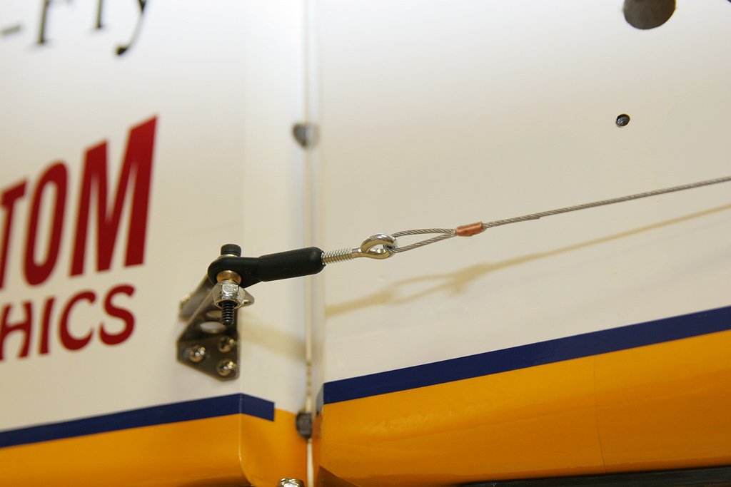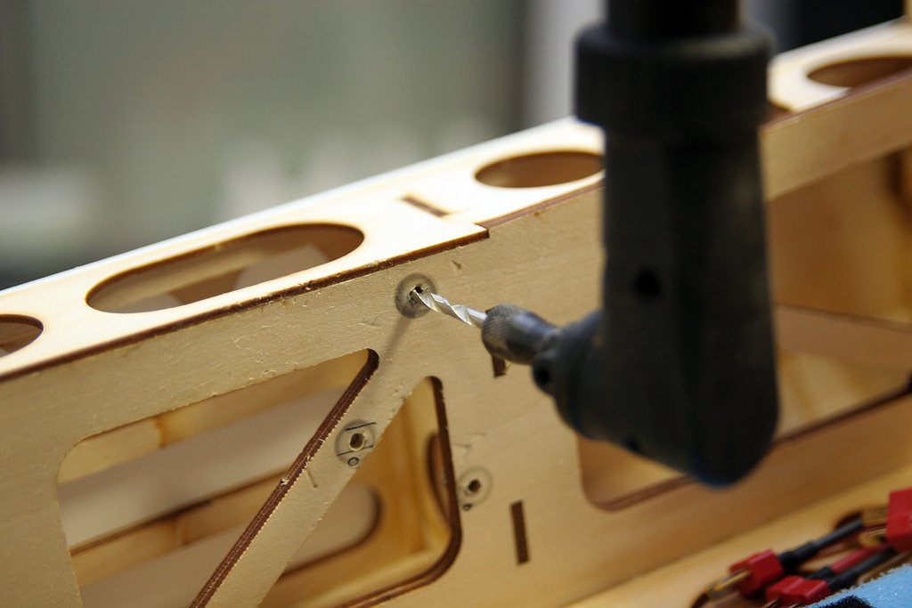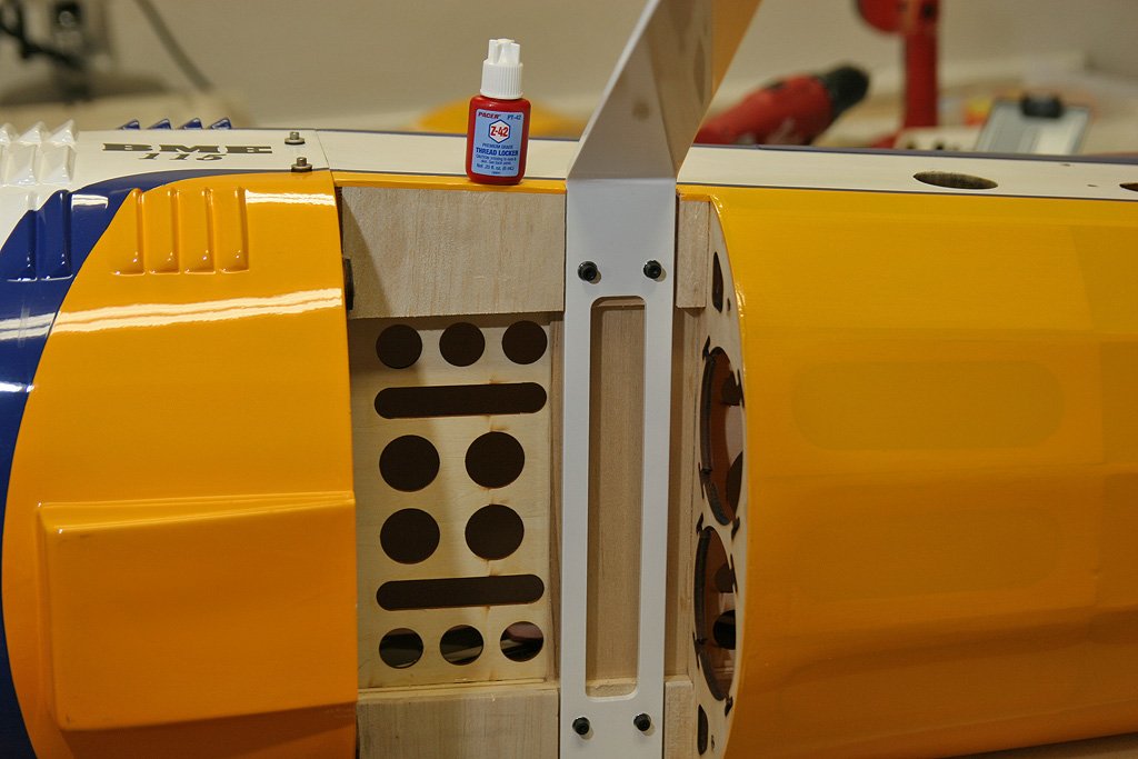 It doesn’t take but a minute to drill pilot holes in new locations. And, Aeroworks gives you a generously sized hard point to keep this from being any kind of problem. I’ve seen, and replaced, some slack factory hard points in these 1/3 scale ARFs from other manufacturers, but never from Aeroworks, their hard points are solid: