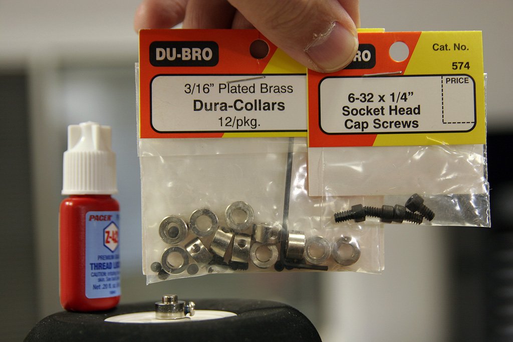 One other lil’ tidbit… when I use DUBRO axles and collars, I use the DUBRO 1/4″ long 6-32 socket head machine bolts. These are nice and easy to handle versus the little set screws: