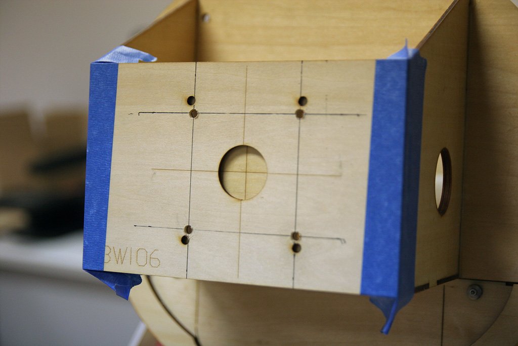A shot from the top and also a shot showing the pre-installed and glued in blind nuts for the landing gear (again going through a double layer of 1/4″ hardwood that has alot of coverage or shear strength):
