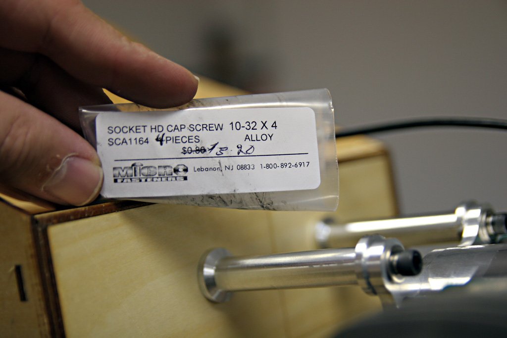 I used 2-56 stainless steel bolts from www.microfasteners.com because I didn’t think there was enough meat (meat, hog, get it? lol) there for 4-40: