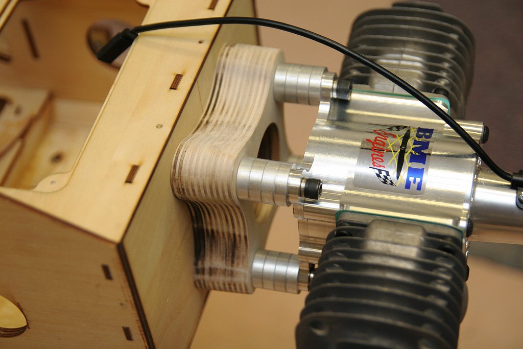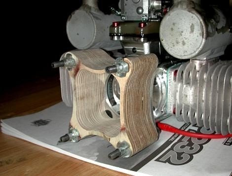 Big Bob Knudsen told me the 2″ standoffs yield too much vibration… maybe I should just go with my old method and build a ply spacer. <shrug> This was back in 2001, first gas engine mount I ever made: