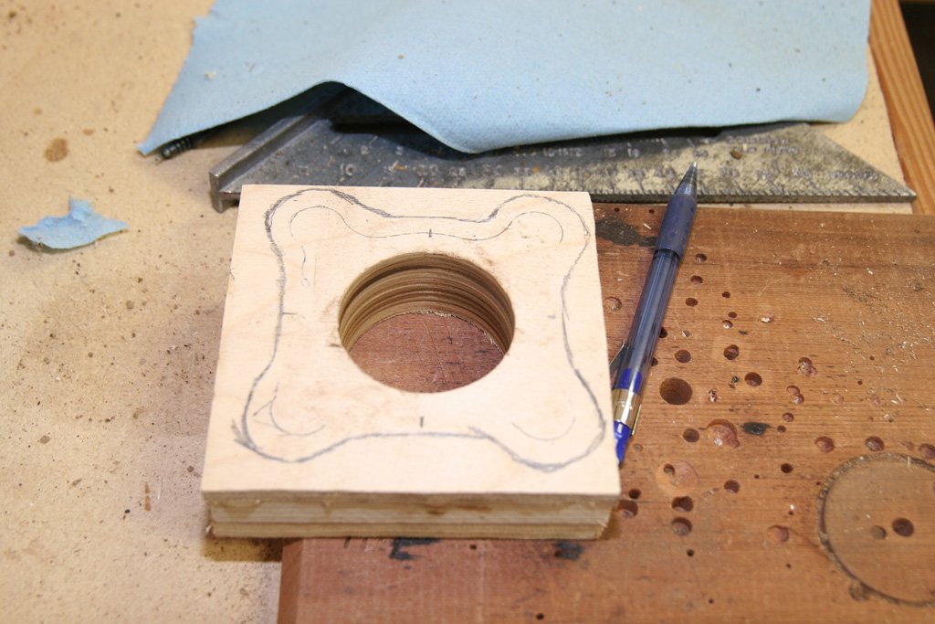 I sanding the block down with a belt sander (this is actual very easy with a spindle sander), but here’s how I pencil’d out my outline: