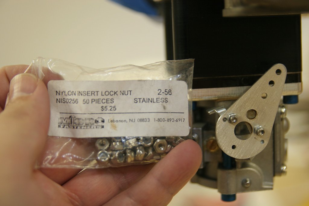 I didn’t have any 2-56 washers so I used some old 2-56 basic nuts I had laying around (note to self, order some 2-56 stainless steel washers). And, I used www.microfasteners.com 2-56 SS nylon locking nuts on the back side: