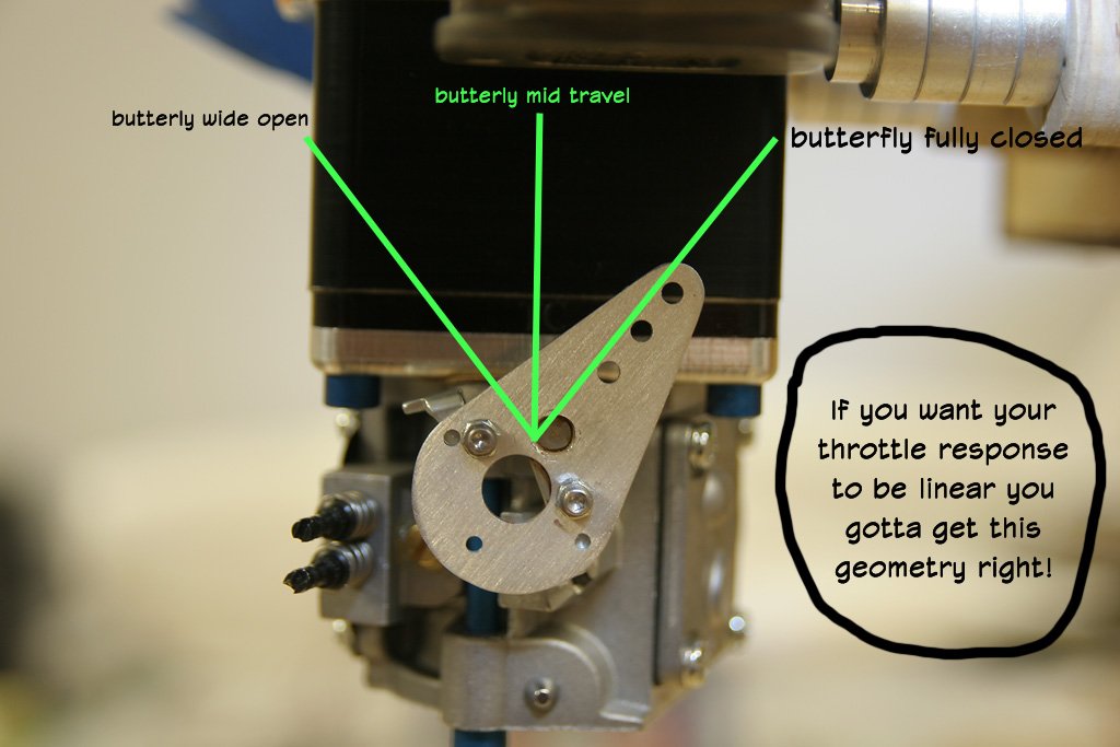 I get 120/120 ATV on a non-programmed servo with this setup (while making sure to maintain plenty of leverage for solidly closing the butterfly)… which means great throttle resolution: