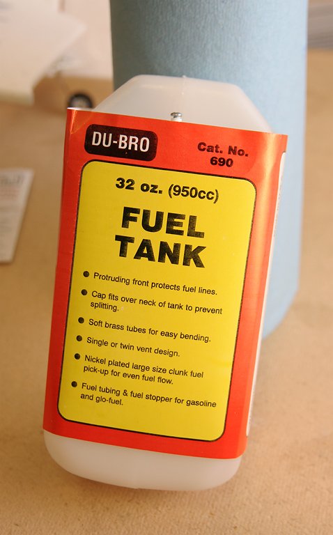 Well, after I finished talking to my friend Khalid Al Sabah from Kuwait about model planes… I got started on the fuel tank. Aeroworks includes a fine tank, but I’m used to using DUBRO tanks and had one laying around… I’m comfortable with them, they’ve never let me down, so anyway, I used the DUBRO tank (32oz):