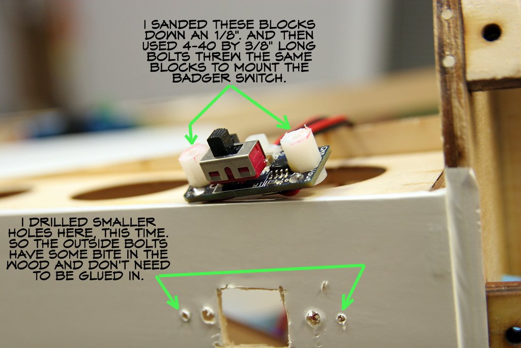 Worked so good on the Wolverine I thought I’d try it on the Badger… this time I drilled smaller outside holes so the 4-40s would bite into the wood and not need gluing: