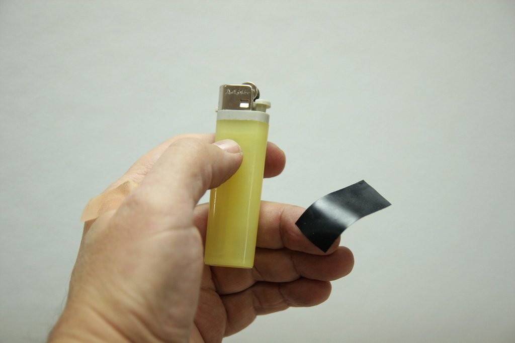 My friend used some line from an Aeroworks ARF that did stiffen up on him. Totally rigid. He flamed out while doing a slow inverted pass, it was a lucky save. The upper line (the carb line) in the pic below is completely rigid, even when soaked for an hour in gasoline! You can also see that it has shrunk. My friend’s first clue was that his engine was too lean to start even though last time he flew it (6 months back) it ran perfectly. We always get a warning, but oftentimes don’t notice it. He turned the needles way out and flew. After he burned off a little fuel and went inverted he flamed out… no gas… even though he had 7/8 of a tank! Just make sure you have the good line:
