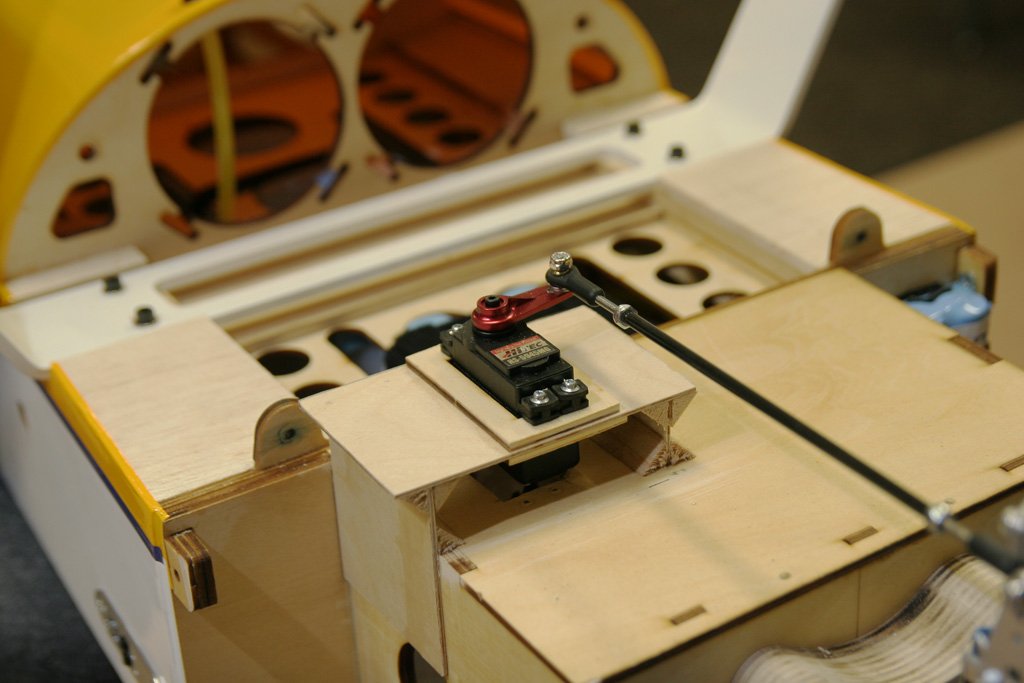 Dunny and Jim Orsi will like this, lol, I lowered the servo for better geometry now that the throttle arm was lower… we call this “big time modeler” work… or BTM for short. lol I usually avoid doing anything BTM style, but here it is in all its BTM glory: