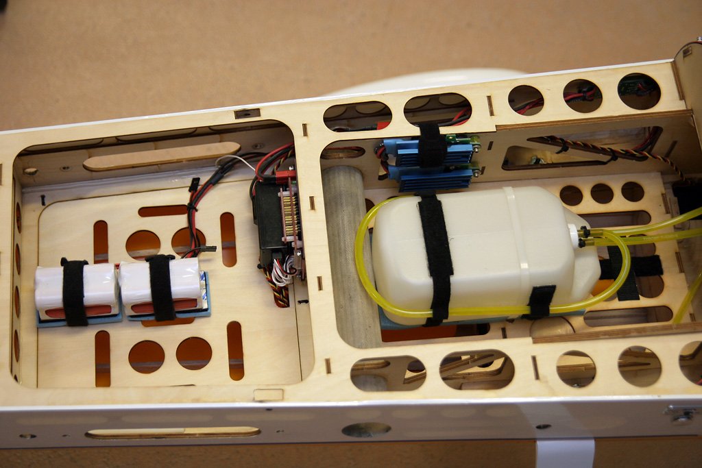 I mounted the fuel tank and two Fromeco 5200mah “Grunt” packs. We’ll have to see how the CG works out to decide if they’ll stay here or not: