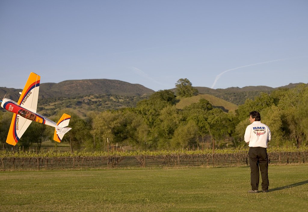 Maiden day finally arrived! I got to the field at 2pm… oh Ukiah, what a paradise, but nobody to fly with… I showed up on the nicest day of the year, or maybe the century!… 75 degrees, 2-4mph breeze… I had to unlock the gate. No one up here flies! Well, no fighting for air space, anyway. Everything on the plane checked out fine so she went airborne. To me… this plane is a winner! It wants to stay put unless you give it some input… it doesn’t dart or sink… it just stays put. The CG worked out ideal for precision, but wanting the plane more for freestyle so I’ll probably move the battery packs.